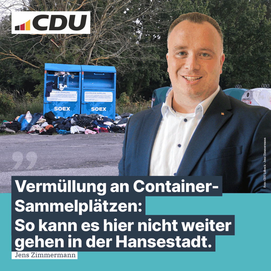 „Es kann nicht sein, dass die Hansestadt zuguckt, während städtische Flächen zu wilden Müllkippen verkommen“, kritisiert Jens Zimmermann, stellvertretender Kreisvorsitzender der CDU Lübeck. „Die Verwaltung ist hier in der Pflicht — wir brauchen jetzt dringend ein Ende des Wegschauens.“