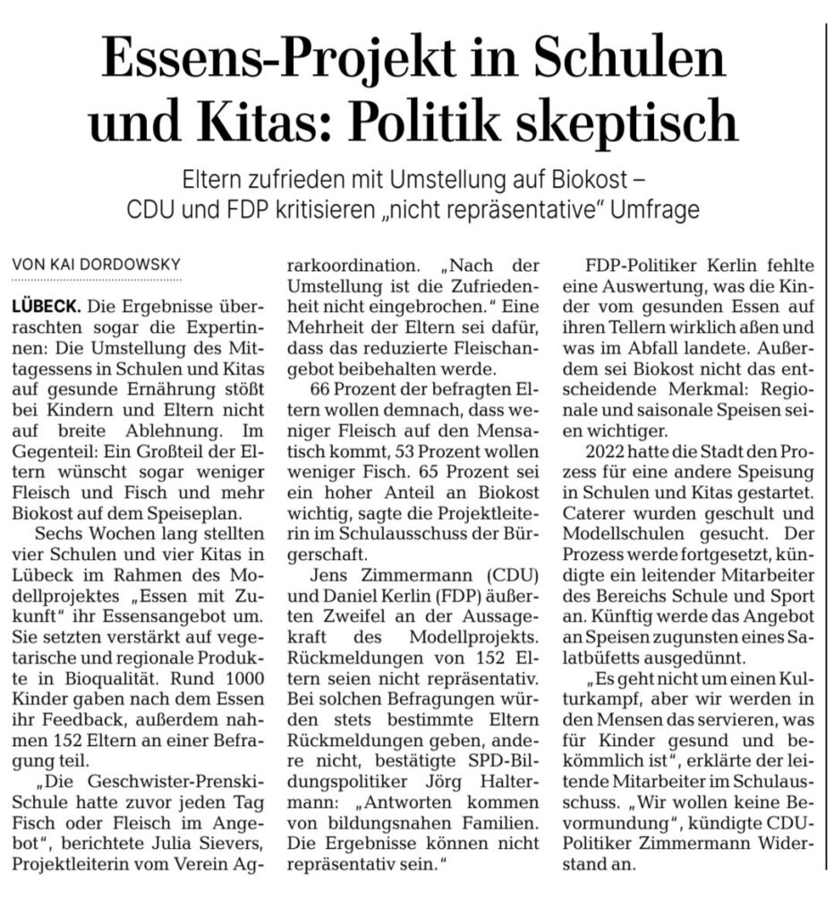 Zitate aus dem heutigen Artikel der Lübecker Nachrichten: