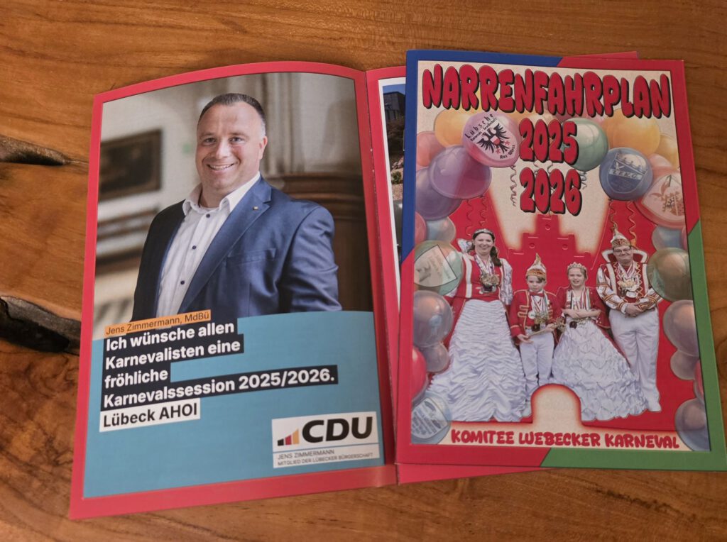 Mit der alljährlichen Spendenaktion „Karnevalisten helfen Kids“ werden die Lübecker Karnevalisten dazu auch ihrer sozialen Verantwortung in beeindruckender Weise gerecht. Und so ist es für mich selbstverständlich, dass ich als CDU- Bürgerschaftsmitglied und Jugend- & Bildungspolitiker die Bemühungen und die tolle Arbeit des Komitee Lübecker Karneval – KLK wieder mit einer Annonce im diesjährigen Narrenfahrplan der Lübecker Karnevalisten unterstütze.