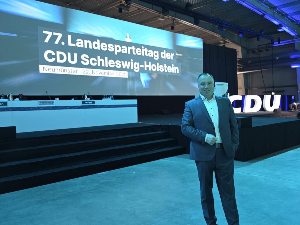 Beim 77. Landesparteitag der CDU Schleswig-Holstein in den Holstenhallen Neumünster nahm u.a. auch Jens Zimmermann, stellvertretender Kreisvorsitzender der CDU Lübeck, als Delegierter des Kreisverbandes teil.