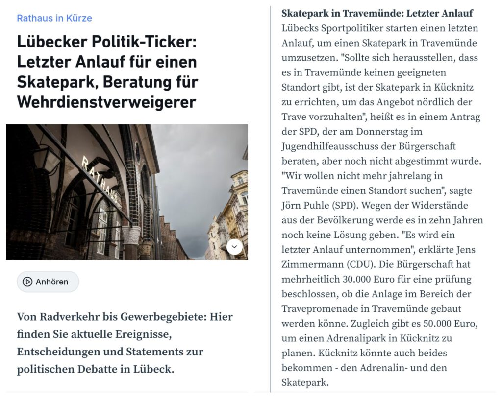Screenshot Lübecker Nachrichten online, 21. November 2025